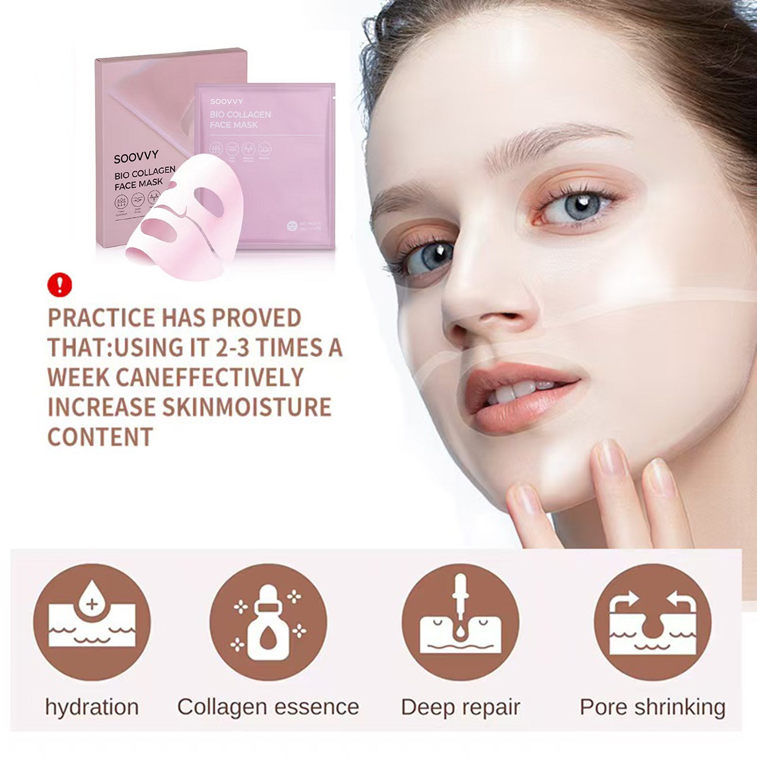 SOOVVY Bio-Collagen Real Deep Mask,PDRN Overnight Moisturizing Face Mask for Glow and Dewy Skin,Original Hydrating Vegan Collagen Face Mask,Korean Skincare,4ea